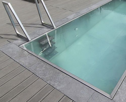 Taşmalı yüzme havuzu estetik açıdan mükemmel bir havuzdur.Şelale, fıskiye gibi tasarım öğeleri ile bütünleşebilir.Taşma sisteminde ; havuz suyu daimi olarak dolaşımdadır.Böylelikle havuz temiz kalır ve suyun oksijen oranı artar.